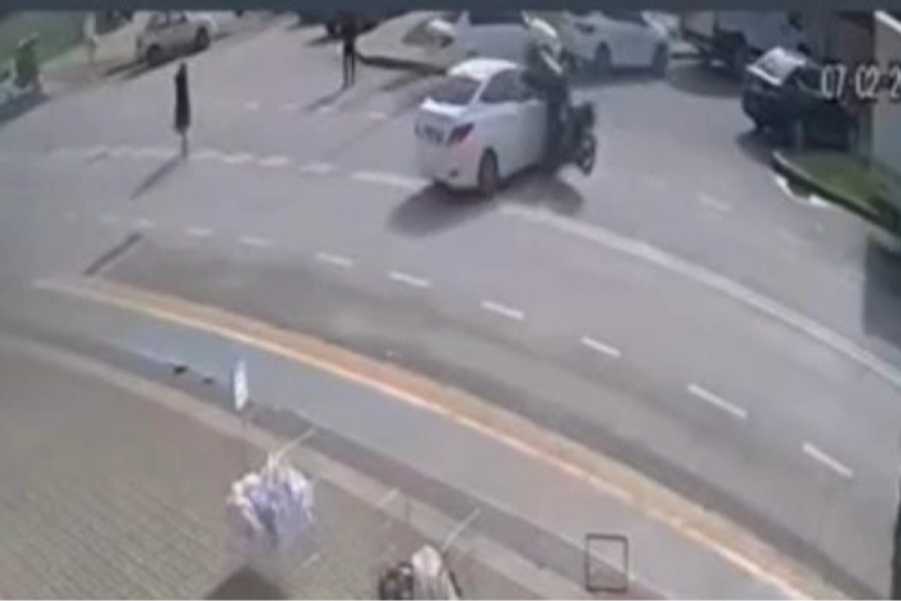 Motosiklet, otomobilin sağ ön kapısına çarptıktan sonra hızın etkisiyle aracın üzerinden savrularak yere düştü.