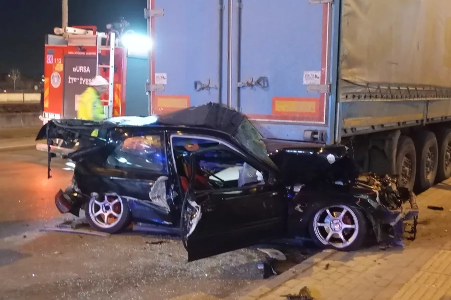 Kaza, saat 03.30 sıralarında Ankara Yolu Caddesi'nde meydana geldi. Edinilen bilgiye göre, Oktay S. (23) idaresindeki 16 APN 53 plakalı otomobil, Kestel istikametine doğru seyir halindeyken Yusuf Y. yönetimindeki 16 AT 315 plakalı hafif ticari araçla çarpıştı. Çarpışmanın etkisiyle direksiyon hakimiyetini kaybeden otomobil sürücüsü Oktay S. (23), cadde üzerinde park halinde bulunan 16 RS 365 plakalı tıra çarparak aracın altına girdi.