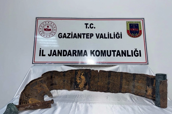 Yakalanan şüphelinin üstünde ve aracında yapılan aramada, 2 metre uzunluğunda piton derisine işlenmiş İbranice altın yazmalı kitap, kitabın rulo haline getirilerek muhafaza edildiği bakır ve üzerinde işlemeler bulunan kapaklı kılıf ele geçirildi.