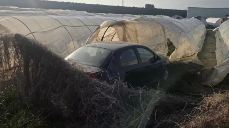 Kontrolden çıkan otomobil seraya uçtu