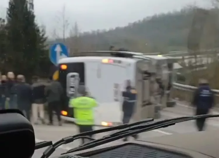 Orhangazi yolu üzeri işçi servisi devrildi