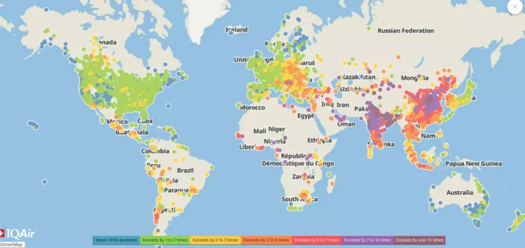 Dünya genelindeki şehirlerin yalnızca %14'ü, DSÖ'nün PM2.5 ince partikül madde konsantrasyonu kılavuzunda belirtilen (5 µg/m³) güvenli eşiği karşılıyor; bu oran 2024'te %17 idi. 143 ülke ve bölgenin 130'u bu güvenli eşiği aşıyor.